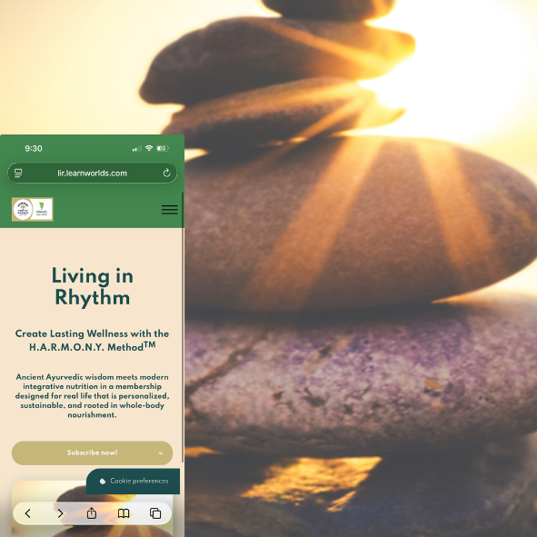 Ancient Ayurvedic wisdom and modern integrative nutrition, brought together in one place. You get access to a growing library of workshops, resources, and practices, plus live member events and a community of women on a similar path. New content added every month, guided by our H.A.R.M.O.N.Y. Method™ framework.